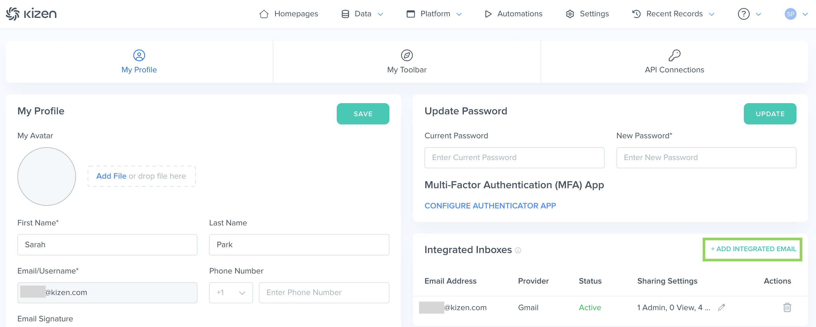 Purpose: This article offers an overview of Kizen's Integrated Inbox to send and track email history with your contacts, a step-by-step guide to connect your Gmail or Outlook account, and quick troubleshooting steps.